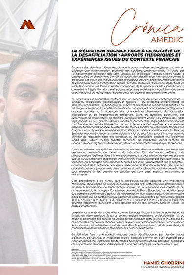 As Crónicas AMEDIIC resultam de reflexões breves sobre Mediação, partilhadas por especialistas na área. Nestas crónicas reflete-se sobre perceções, posicionamentos, experiências e/ou, até, propostas concretas que contribuam para o reconhecimento e desenvolvimento da mediação.